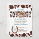Kleiner Cowboy auf dem Weg blauen und braunen Kuh Muster niedliches Kinderpferd in einem Hut Western Baby Dusche Einladung bearbeitbare Vorlage Sofortdownload.