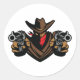 Ein Cowboy verbietet mit seinen Gewehren. Dieses Design sieht auf diesen Aufklebern wirklich effektiv aus
