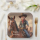 Diese Teller sind mit einem Cartoon Cowboy ausgestattet, der auf einem Pferd reitet und eine Geburtstagsbotschaft hat, die hinzugefügt, geändert oder eliminiert werden kann.