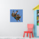 Ein Vintag aussehender Cowboy, der auf einem Bullen reitet. Die Wände sind mit einem Western im Landhausstil dekoriert.
