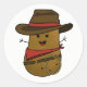 Eine hübsche, fröhlich braune Kartoffel, gekleidet in einem Cowboyhut, einer roten Bandana und einem Lasso auf seinem Gürtel.
