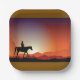 Dieses Design ist ein Cowboy, der auf einem Pferd reitet. Der Cowboy auf dem Pferd geht bei Sonnenuntergang über das Land. Dieser Cowboy, der auf einem Pferdedesign reitet, sieht auf diesen Paper-Tellern großartig aus