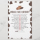 Das ist ein Cowboy Rodeo Western würde sie lieber sein? Baby Shower Game. *Würde sie eher? - Die Mama wird ihr eigenes persönliches Antwortblatt ausfüllen. Die Gäste werden die richtige Option umkreisen, wenn sie ihre eigenen persönlichen Kenntnisse über die Mami sein soll. Wer die richtigen Antworten bekommt, gewinnt!