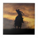 Das ist ein tolles Geschenk für den Cowboy, diese Kunstfliese mit einem Cowboy, der bei Sonnenuntergang einen Lenker abseilt. Ein tolles Western-Akzent!
