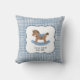 Dieses Kissen gehört zu unserer Cowboyschwingpferdesammlung und das personalisierte Werkzeug erlauben Ihnen, sich in den Namen und zu datieren oder in jede mögliche Benennung zu setzen, die die Gelegenheit passt. Das äußere Kissen ist ein kariertes Blau im gleichen Schatten wie das Blau im Schwingpferd und auch in der Rückseite.