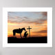 Die Cowboy Gebet-Silhouette mit einem kalifornischen Sonnenuntergang Poster.