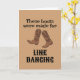 Diese humorvolle Geburtstagskarte für Line-Tänzer hat ein Paar Country-Western Cowboystiefel und sagt, Line-Tänzer an Bord. Innen ist ein lustiger Gruß, den jeder Line-Tänzer verstehen wird, und es sagt, "Happy Birthday". Geben Sie einen an Ihren Line Dance Lehrer oder Lehrer oder ein Mitglied Ihrer Gruppe. Sie können eine andere Hintergrundfarbe auswählen, wenn Sie gewollt haben. Dieses Produkt ist auch auf T - Shirt und anderen Produkten erhältlich. Sehen Sie mehr Tanzdesigns und -produkte auf Alinas Stift.
