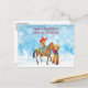 Diese fröhliche Karte verfügt über ein montiertes Cowgirl und einen Cowboy in einer verschneiten Landschaft.