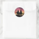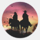 Das sind wirklich hübsche Aufkleber eines Cowboy und Cowgirl im Sonnenuntergang mit einem phantastischen Himmel! Ein großartiger Country Western-Aufkleber zum Thema. Sie sind beide auf dem Pferd, ein romantisches cooles Bild.