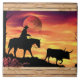 Brighten Sie Ihre Zuhause mit diesem einzigartigen Cowboy und dem Longhorn Steer Keramik Tile! Es verfügt über einen Cowboy, der eine Pferdeherde und eine Langläuferin reitet, während ein wunderschöner orangefarbener Sonnenuntergang...mit Holzgrenzen! Original Art Design von Kerry Miller.
