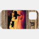 Personalisieren Sie diese einzigartige "One of a Kind" Cowboy und Longhorn Steer iPhone Case! Es verfügt über einen Cowboy, der eine Pferdeherde und eine Langläuferin reitet, während eines wunderschönen orangen Sonnenuntergangs...umgeben von Holzgrenzen! Original Art Design von Kerry Miller.