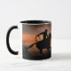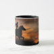 Cowboy und Pferd bei Sonnenuntergang. Das ist eine coole Western Kaffee Tasse. Cowboy reitet auf seinem Pferd mit seinem Sekretariat bereit zu gehen und das letzte Licht des Tages zu rennen. Große südwestliche Sonnenuntergangsfarben. Preisgekröntes Bild.