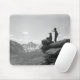 Zwei Cowboys auf einer Kante zeigend in Richtung zu einem Gebirgszug in Wyoming.