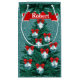 Cowboys und Cowgirl Seil Silhouetten auf blauen Ornamenten mit roten Bändern, die einen grünen Weihnachtsbaum schmücken. Der Hintergrund ist der blaue IMITAT Glitzer Print. Kein tatsächlicher Glitzer. Dieses Design ist vorne und hinten bedruckt. Oben ist ein Band für Ihre Textauswahl. Verwenden Sie einen Namen oder einen Feiertagsgruß. Weitere Western-Urlaubsprodukte finden Sie im Rodeo Days Store.