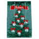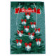Cowboys und Cowgirl Seil Silhouetten auf blauen Ornamenten mit roten Bändern, die einen grünen Weihnachtsbaum schmücken. Der Hintergrund ist der blaue IMITAT Glitzer Print. Kein tatsächlicher Glitzer. Dieses Design ist vorne und hinten bedruckt. Oben ist ein Band für Ihre Textauswahl. Verwenden Sie einen Namen oder einen Feiertagsgruß. Weitere Western-Urlaubsprodukte finden Sie im Rodeo Days Store.