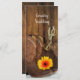 Geben Sie Ihren Gästen die Reihenfolge Ihrer Ranch Thema Ehe Zeremonie mit dem charmanten Cowboy Boots, Daisy und Pferde Bit Country Western Wedding Programm. Dieses spezielle rustikale schicke Reittierprogramm mit einer hochauflösenden Zeitachse zeigt ein kleines, digital erweitertes Blumenfoto mit Cowboystiefeln, gelben und orangen Blüten aus der Blume, weißer Perlenhalskette, Pferdchen- und Lederreins mit braunem, verwittertem Stallholz.
