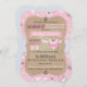 Bandanna drucken Hintergrund und Kuh Druck Tuch Tutu, cowgirl Stiefel Socken, und Windeln Tutu auf der Wäscheleine Baby Dusche Einladungskarte Design in Rosa, Taupe Grau und Braun.