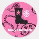 Rosa Cowgirl Aufkleber, die ein festliches Siegel für klare Bonbons machen oder die größeren Aufkleber auf der Vorderseite der Taschen verwenden. Dieser Aufkleber hat einen rosa Bandanna-Hintergrund mit einem braunen Cowboy-Hut mit einer rosa Band. Passen Sie sich mit dem Namen der Party an.