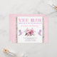 Party Einladung mit lila, rosa Blume, Stiefel und Pferdeschuh, beiderseits mit rosa und weißem Gingham-Karo dekoriert.