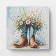 Cowgirl-thematisierte Tafel (mit Sohle) mit Stiefeln und Blume.