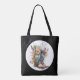 Cowgirl Tote Tasche, mit schönen Kunstwerken eines Paar Cowgirl Stiefel und farbige Wildblumen, Set in einem weißen Kreis mit schwarzem Hintergrund. Blue Custom Text ist bereit, für sich selbst oder als eine schöne Geschenkidee zu personalisieren.
