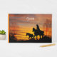 Cowgirl Sunset Horseback Ride, Guest Book. Digital Art. Cowgirl auf einer Fahrt im Sonnenuntergang. Ideal für das Land und Western Set. Vollständig anpassbar, machen Sie es zu Ihrem eigenen. Bearbeiten Sie den Text nach Ihren Wünschen, oder entfernen Sie den Text ganz.