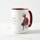 Ein Cowgirl, das einen sträubenden Bronco reitet, wird auf dieser ausdrucksvollen Tasse zusammen mit der Aufschrift, "hartes Workin Mädchen" gekennzeichnet.