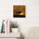 Schöne Szene eines Cowgirl galoppiert ihr Pferd in einem südwestlichen Sonnenuntergang. Hübsche Land Western Ranch Dekoration.