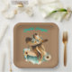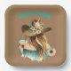 Square Cowgirl Party Papierteller Cowgirl Teller! Brauner Hintergrund, der das Cowgirl mit einem braunen Hut aus Western mit pastellfarbenen Blume zeigt. Großes Thema für Western Cowgirl-Party! Sehen Sie andere passende Geschirr in diesem Thema.