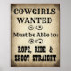 Für die Liebe aller Dinge Cowgirl - Vintage Stil Plakatwerbung für Cowgirls. Gewisse Grundfertigkeiten sind natürlich notwendig. Sie MUSS in der Lage sein, direkt zu reiten, zu fahren und zu schießen. Ein cooler Hut und Stiefel sind auch ein Plus!