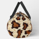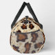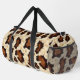 Dieser große, geschnittene und genäht Duffelbeutel wird in einem rustikalen Kuhstropp mit schwarzen Gurten gezeigt. Imitate bedrucken. Passen Sie dieses Objekt an oder kaufen Sie es wie gezeigt. Lizenzierte Printwerbung