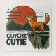 Charmanter Coyote mit spielerischem Ambiente unter dem roten Sonnenuntergang. Ideal für Naturliebhaber, Naturliebhaber oder alle, die niedliche und wilde Tierkunst mit einer Touch Abenteuer genießen.