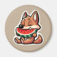 Das sonnige Bild eines Coyote, der eine Wassermelone isst