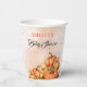 Quench your guests' thirst in style with this Cozy Autumnal Gold Orange Watercolor Pumpkin Fall Baby Shower Paper Cup! Featuring the same enchanting hand-painted style pumpkins, rustic fall foliage, and delicate gold speckles as the rest of your baby shower stationery, these durable paper cups are perfect for serving hot or cold beverages. Fully customizable with the mom-to-be's name and event date, they add a charming and cohesive element to your autumn-themed celebration. A delightful and practical addition to ensure your baby shower decor is perfectly coordinated.