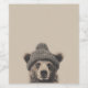 A warm and charming illustration of a bear wearing a cozy knitted beanie. This detailed artwork captures a soft, rustic feel with delicate textures and a calm, expressive look. The neutral tones and hand-drawn style create a timeless design that blends woodland charm with a cozy winter aesthetic.