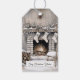 A stone hearth glows beneath knit stockings and snow kissed evergreens, setting a cozy cottage mood for your holiday gift tags. The front reads Cozy Christmas Wishes, while the back provides To and From lines for easy gifting. Neutral taupe and ivory feel warm and classic, can pair beautifully with kraft paper, linen ribbon, or twine.