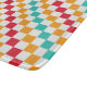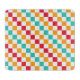 Alternating red, orange, teal, and white squares create a colorful, vibrant checkerboard pattern, conveying an energetic and playful tone.