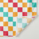 Alternating red, orange, teal, and white squares create a colorful, vibrant checkerboard pattern, conveying an energetic and playful tone.