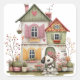 Cozy Cottage and Puppy Quadratischer Aufkleber