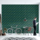 A whimsical forest-themed pattern featuring trees, foxes, rabbits, a deer, and a cozy cabin, set against a deep teal background. Perfect for nature lovers.