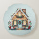 Cozy Gingerbread House Holiday Illustration Rundes Kissen