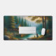 Step into a peaceful lakeside scene where towering evergreens frame a glowing cabin and soft light shimmers across still water. This woodland desk mat captures a family gathered at the shoreline, fishing lines cast with patient hands and children standing close beside steady guidance. It reflects the beauty of unhurried time together — small voices drifting across the water, shared stillness, and simple outdoor moments that shape childhood and remain close to the heart. Warm, grounding, and quietly comforting, this design brings storybook charm and a sense of connection to your everyday workspace.