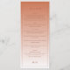 This elegant wedding menu features a vertical layout with a warm peach-colored background, creating an inviting and sophisticated atmosphere. The design includes clean, serif typography for the section headings and a soft brown cursive script for the title "menu," enhancing its classic charm. Each course is neatly organized into distinct sections—STARTERS, SALAD, MAIN COURSE, and DESSERT—with clear spacing that ensures readability. The overall style is refined and welcoming, perfect for formal dining experiences, while the monogram at the bottom adds a personalized touch to this stylish template.