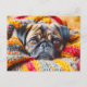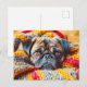 Cozy Pug Wrapped in Knitted Blanket Postkarte