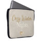 Protect your laptop in style with this elegant "Cozy Winter Nights" laptop sleeve. The design features a warm, minimalist aesthetic with a soft cream background, twinkling gold stars, and a charming watercolor illustration of a steaming cup of cocoa and a crescent moon. Made from lightweight and water-resistant neoprene, this form-fitting case is designed specifically for slim laptops (available for 10", 13", and 15" sizes). It's the perfect winter accessory to keep your device safe from scratches while adding a touch of cozy, rustic charm to your daily routine.