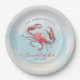 Crab Boil Seafood Familie Sommer Party Aquarellpapier Teller. Mit Aquarellfarben gestaltete Darstellung einer Krabbe mit elegantem Hintergrund. Fügen Sie den Namen der Familie und den Anlass hinzu, indem Sie auf die Schaltfläche "Personalisieren" klicken