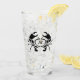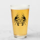 Eine illustrierte Krabbe, die von oben in einem schablonenförmigen Stil gezeichnet wurde. Die Klauen werden geöffnet, die Beine verteilt, und die Oberseite der Muschel ist ein weißer Raum für ein Monogramm.