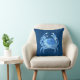 Kopfkissen in einer Vintagen Abbildung eines Krabbels, digital verstärkt und in Blau- und Weißtönen gehalten, vor einem tiefblauem Hintergrund