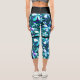 Crackle Blume Muster Blau Lila Aquamarin Capri Leggings