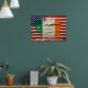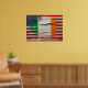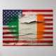 Perfektes Plakat für den stolzen irischen Amerikaner! Eine verblasste und abgetragene amerikanische Flagge, die mit der Flagge Irlands vermischt wurde und über ein rustikales Stück Holz mit geknackter Farbe platziert wurde.